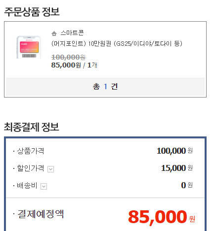 15% 할인을 받아서 머지포인트를 적극 활용하길 바란다