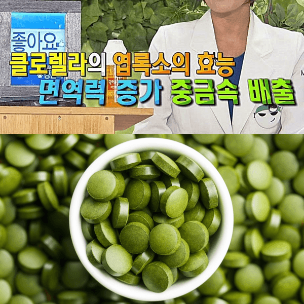 클로렐라에서는 일반 채소보다 무려 10배의 많은 엽록소를 함유하고 있다. 여기에서 엽록소는 빛 에너지를 유기 화합물 합성하여 화학 에너지로 바꿔주는 녹색 색소를 말한다. 클로렐라를 섭취하게 되면 우리 몸 속에 쌓여있는 장내 우라늄과 납, 수은 등의 중금속 물질을 분해하고 독성 물질을 해독해준다. 동시에 체외로 빠르게 배출시켜 주는 역할을 함으로 몸속독소제거 식품으로 훌륭하다.