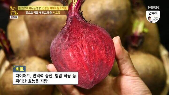 비트는 신장 보호해주는 효능까지 있다. 혈관벽 손상을 막아줌으로써 심혈관을 튼튼하게 하고 항산화 효능이 있다. 라이코펜 성분 역시 함유하고 있는데, 이는 체내 활성산소를 제거해주면서 항암 작용까지 한다.