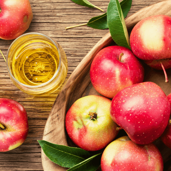 사과식초에는 천연 각질 제거제 성분인 알파 하이드록시산 성분이 함유되어 있다. 피부 표면의 각질을 제거하는 데에 효과가 좋으며 얼굴 각질을 갉아먹는 모낭충 제거에도 효과적이다. 또한 말릭산 성분도 함유되어 있어 피지가 쌓이지 않도록 도움을 준다. 피부 세포를 방어 및 노폐물로 인한 뾰루지까지 예방하기 때문에 얼굴 가려움이 많은 사람들에게는 사과식초 세안법도 좋은 방법이다.