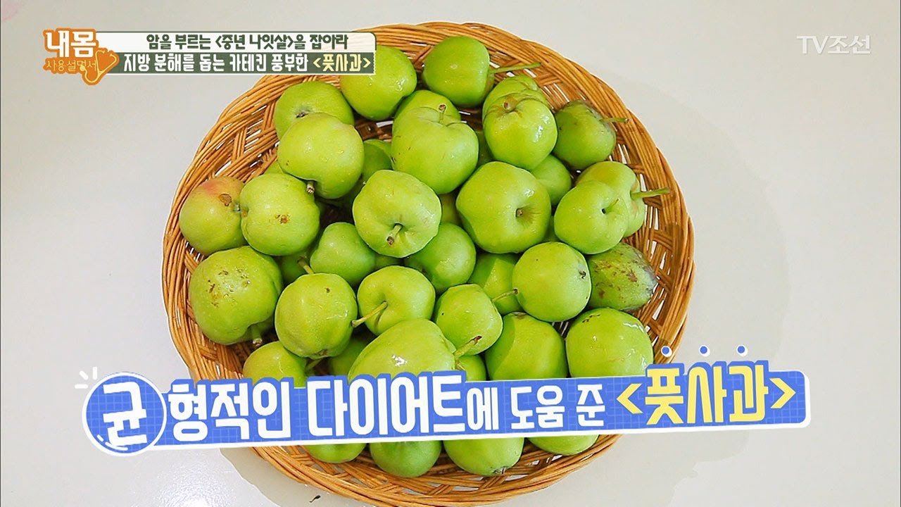 가장 먼저 살찌는 원인들을 알아야 한다. 우리의 장내는 독소와 노폐물이 쌓이면서 비만세균이라고 불리는 '퍼미쿠테스'가 서식하게 된다. 비만세균이 장내에 오래 머물게 되면, 불필요하게 지방을 끌어 당기면서 살을 찌우게 만든다. 반대로 건강한 사람의 장내에는 박테로이데테스 문 세균이라고 유익균이 서식한다. 이 이로운 유익균을 폴리페놀의 풋사과에서 찾아볼 수 있다. 그렇기 때문에 내장지방 감소 효과에 좋은 풋사과를 꾸준히 섭취함으로써 체지방 감소 효과를 볼 수 있다.