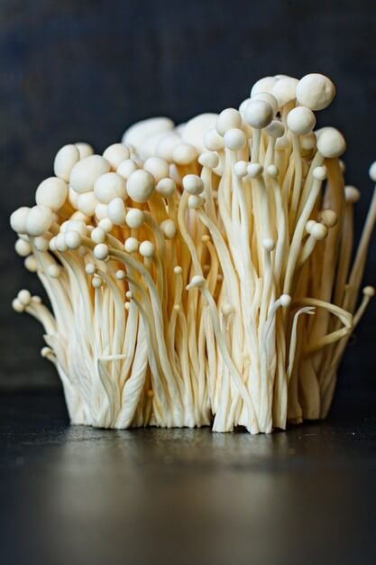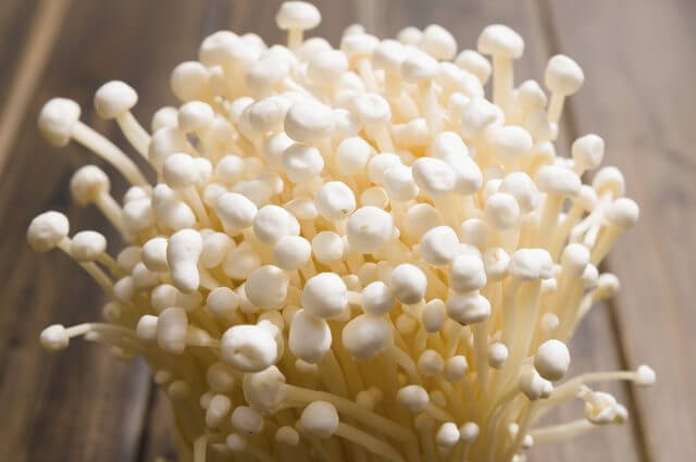 팽이버섯은 100g에 약 32kcal이다. 칼로리는 낮지만 식이섬유가 풍부하여, 버섯 중에서도 가장 으뜸이다. 팽이버섯은 세포 벽에서 지방 흡수를 억제하면서, 지방 연소를 촉진하는것으로 잘 알려져 있다.