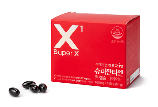 다이어트 보조제를 활용하면 식이요법이나 운동을 하지 않고도 단기간 지방을 빠르게 태우는 데에 도움을 받을 수 있다. 슈퍼잔티젠 원 캡슐 다이어트는 미역추출물과 석류씨 오일에서 복합 추출물로 만들어졌다. 잔티젠이 주 원료로 함유되어 있으며 이는 인체적용시험을 통하여 체지방 감소, 허리 둘레 감소, 기초대사량 증가 등 일조하는 데에 확인되었다. 기초대사량은 하루 400kcal 높여 주는 것으로 전해진다.