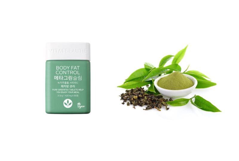 아모레퍼시픽에서의 이너뷰티 브랜드인 바이탈뷰티에서 메타그린 슬림업을 출시하였다. 메타그린 슬림업은 녹차추출물인 카테킨 주요 성분을 활용하여 체지방 감소 및 식이 대사 강화에 도움을 줄 수 있는 제품이다. 특히 현대인들의 기름지고 칼로리가 높은 식단으로 인하여 내장지방 및 체지방 고민이 있는 사람들에게 안성맞춤이다.