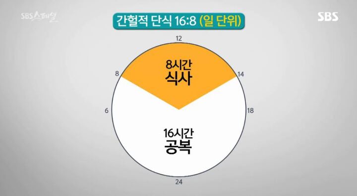 SBS 다큐멘터리 프로그램 간헐적 단식이 소개가 되면서 건강하게 체중 감량을 원하는 사람들에게 화제다. 간헐적 단식은 말 그대로 일주일에 1~2회 정도 한 끼 식사를 굶는 방법이다. 이를 16~24시간 동안 단식을 하는 방법으로 시간제한 다이어트라고 한다. 가장 크게 2가지 시간제한 다이어트로 나뉘는데 '5:2 법칙'과 '16:8법칙'이 있다.