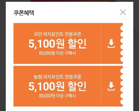 이번 티몬에서 열린 머지포인트에서는 쿠폰혜택까지 적용이 되어 기존 8만원보다 더 저렴하게 구매할 수 있다. 추가적으로 5,100원이나 할인을 해준다는 사실! 그렇다면 10만 원 상품권을 79,900원에 구매할 수 있다는 것이다. 국민카드나 농협카드를 소지한 사람들 한에서 추가적으로 할인을 받을 수 있다. 만약 내가 이 카드가 없다면 가족 카드나 지인 찬스를 활용하여 저렴하게 구매할 수 있다.