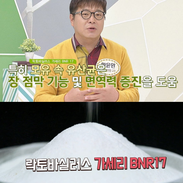 먼저 장 건강 기능을 향상시켜주는 유산균 중에서도 '모유유산균'의 락토바실러스 가세리 BNR17이 혈당 감소 및 장 점막의 기능을 향상시켜 면역력 증강에 기여를 한다. 뚱보균은 장 속에서 지방산을 생성하고 불필요한 지방을 축적하여 비만을 유발한다. 여기에서 모유유산균은 뚱보균을 억제하여 날씬균이라고 불리는 유익균을 증식하는 데에 도움을 준다.