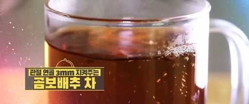 특히 퇴행성 관절염이 있는 사람들에게는 1.5리터에 말린 곰보배추 3g을 넣고 끓여준다. 곶감 4개를 넣어 물이 반으로 줄어들 때까지 끓여주면 곰보배추차가 완성이다. 곰보배추에는 항염증 효과를 가진 비타민K를 다량으로 품고 있어서 무릎 관절에 물 차면서 통증을 수반하는 과정들을 완화시킬 수 있다.