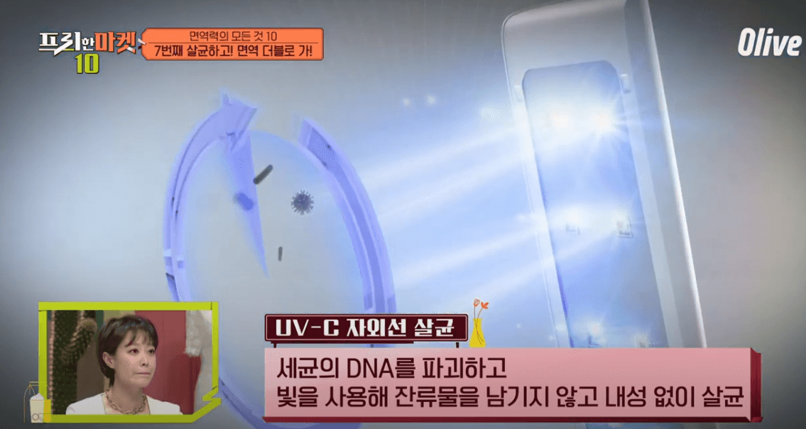 UV-C 자외선 살균은 세균의 DNA 자체를 파괴하고 빛을 사용하여 잔류물까지 제거가 가능하다고 한다. 내성 없이 살균이 가능 하기 때문에 어린 아이가 있는 집에서는 필수템으로 추천한다.
