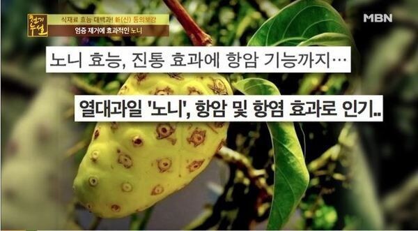 신의 주신 열매라고 불리는 '노니'에 대한 효능을 알아보자 노니는 열대 지방에서 자라나는 열매로서 표면이 울퉁불퉁하고 패인 자국이 있다. 열매에는 여러 개의 작은 갈색 씨가 들어 있으며, 익을 경우에는 꼬..