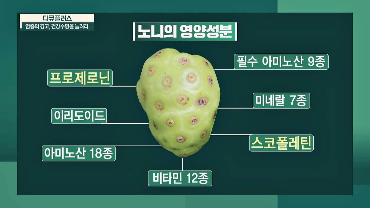 세계적인 슈퍼모델 미란다 커도 먹는 노니는 울퉁불퉁하게 생겼으나, 염증에 좋은 식품으로 잘 알려져 있다. 최근에는 몸속독소제거 염증을 잡아준다고 하여 면역력 강화 및 다이어트 식품으로 화제이다. 자극적이고 기름진 음식을 자주 섭취하는 현대인들에게는 체내에 노폐물들이 쌓이기 때문에 노니를 활용하여 염증을 배출하는 것이 좋다. 평소 면역력이 약한 사람들이라면 폴리페놀, 필수 아미노산 18종, 천연 미네랄 7종, 천연 비타민 12종의 성분으로 다양한 질병 예방에 도움을 받을 수 있다.항산화 물질이 풍부하여 노화 예방 및 치매, 당뇨 까지 예방해준다. 그 외에 몸속독소제거 효능이 있어서 체지방 분해와 다이어트 효과가 있다. 이에 노니를 꾸준하게 섭취하게 되면 피부염이나 체중 감량에 도움이 된다.