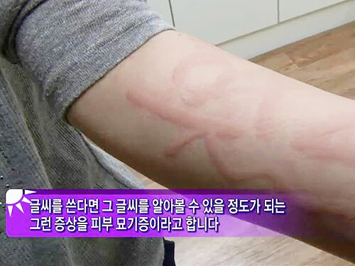 피부를 긁었을 때에 유독 피부가 부어오른다면 피부 묘기증을 의심해봐야 한다. 손톱으로 피부를 긁었을 때에 긁은 부위가 빨갛게 부풀어 오르면서 긁은 자국이 오랫동안 남는다. 피부 묘기증 질환 자체가 생소한 이름임에도 불구하고, 국내 100명 중 4명이 앓고 있을 정도로 흔한 피부 질환이다. 지금까지도 피부 묘기증에 대한 알레르기성 두드러기 발병 원인은 명확하지 않으나 의학계에서는 면역력 저하 및 스트레스, 피로, 수면 장애, 당뇨병 등을 원인으로 추정한다.