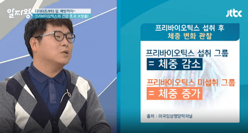 실제 실험 결과 체질량지수가 정상보다 높은 사람일수록 '비만세균'이 많은 걸로 알려졌다. 이에 비만인 어린이들 대상으로 프리바이오틱스 16주간 꾸준하게 섭취한 결과, 비만 세균과 체지방 감소 및 유익균 비피더스균 증가로 확인이 되었다.
