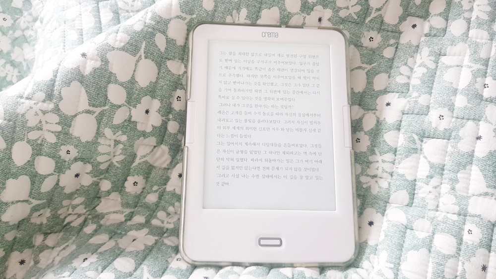 크레마 사운드는 2018년에 구매한 나의 첫 전자책이었다. 지금은 크레마 라인에서 크레마 사운드업이 있고 카르타 라인으로는 카르타 플러스, 카르타G가 있다. 비슷한 이북리더기라도 내 손에 사이즈가 적당한지, 무게는 얼마나 가벼운지 직접 체크하면서 구매하는 것을 추천한다.