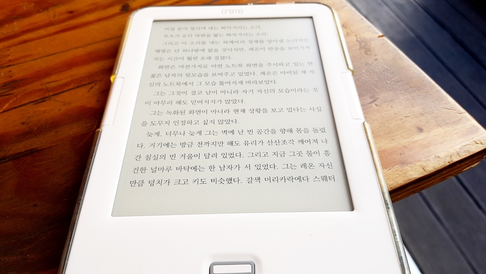 나는 종이 책을 읽을 때면 종이의 재질이나 두께감부터 체크하는 버릇이 있다. 종이책이 주는 따듯한 감성과 한 장 한 장 넘기는 즐거움이랄까. 나의 책상이나 서재에 차곡 차곡 쌓여가는 책들을 보면서 나의 추억이 쌓이는 듯한 느낌이 든다. 세월 따라 변색 되어 가는 책들을 보며 함께 늙어 간다는 생각이 든다. 하지만 이북 리더기는 말 그대로 기기이다. 얇고 가볍지만 차갑다. 화면 위에 글자 만을 보여주는 이북 리더기이기에 책이 가져다 주는 따스함이 다소 떨어진다.